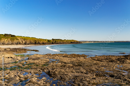 Formation rocheuse émergeant à marée basse, entre sable et falaise, sur la magnifique presqu'île de Crozon, offrant un spectacle naturel unique à découvrir.