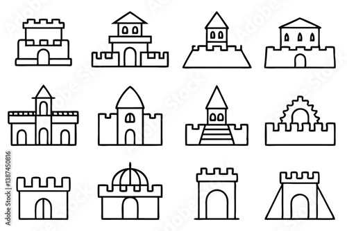 Fortress Line Art Illustration Detailed Sketch for Historical Design Project