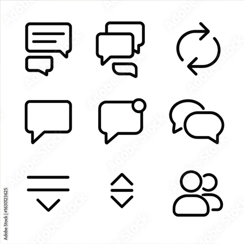 Forum Thread Icons. Outline icon set of threads in communication forums: discussion thread, comment chain, reply arrows, message