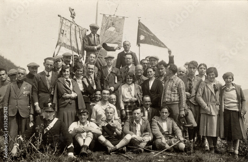 FOTO ANTICA CON GRUPPO DI PERSONE IN MONTAGNA