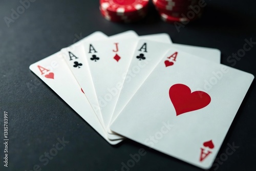 Four aces spread on a surface, showcasing a classic poker hand , pattern, top view