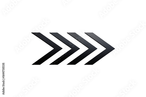 Four black chevron arrows pointing right, flat graphic design elements forming directional sequence pattern, isolated on a transparent background