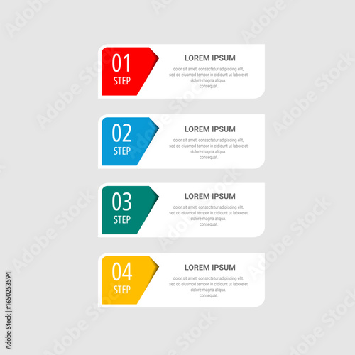 Four colorful numbered steps or stages in a process, presented as a graphic infographic with text placeholders.