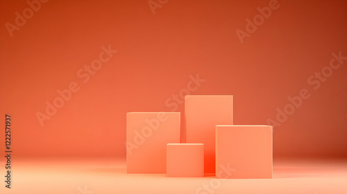 Four Coral Blocks Stand on Coral Floor with Coral Backdrop