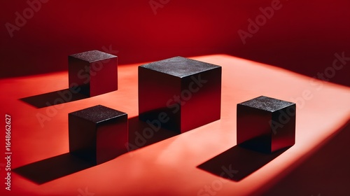 Four dark cubes on a red background.