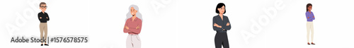 Four diverse professionals in a balanced lineup against a neutral background
