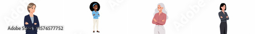 Four diverse women in professional attire standing in a linear arrangement against a light background