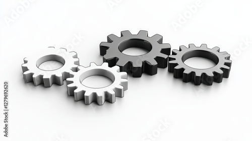 Four interlocking gears in contrasting colors on a clean white background, symbolizing teamwork