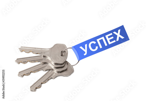 Four keys on ring with russian word SUCCESS collage