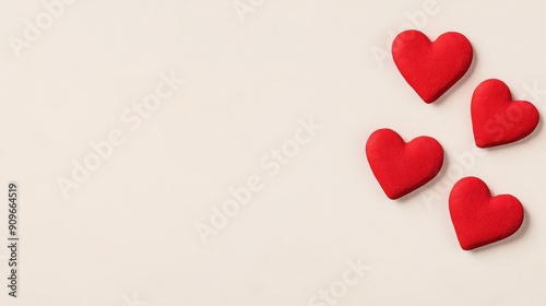 Four red hearts on a soft pastel background, perfect for conveying love and affection in any creative project.
