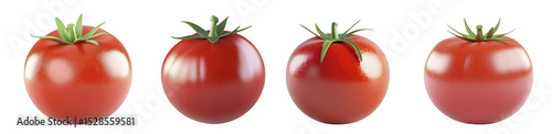 Four ripe tomatoes with green stems on a transparent background, PNG image, PNG file.