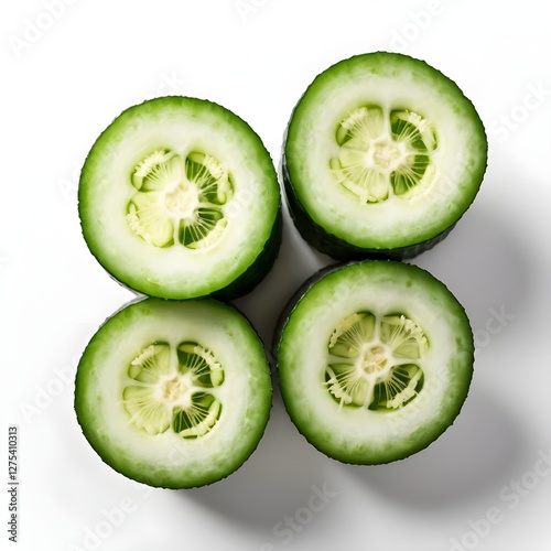 Four Slices of Cucumber on White Background