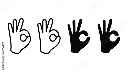 Four stylized "OK" hand gesture icons: line art, filled black, and variations; positive, simple, and universally understood symbols for website design, app interfaces, and presentations.