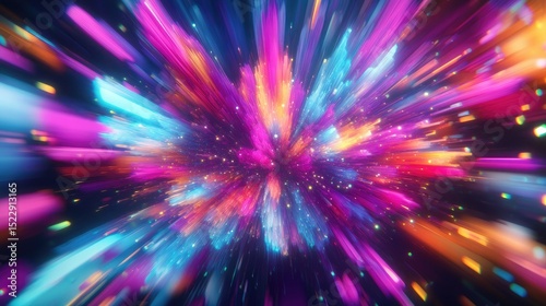 Fractal explosion of vivid colors radiating outward in layers of intricate digital shapes, perfect for tech and fantasy themes
