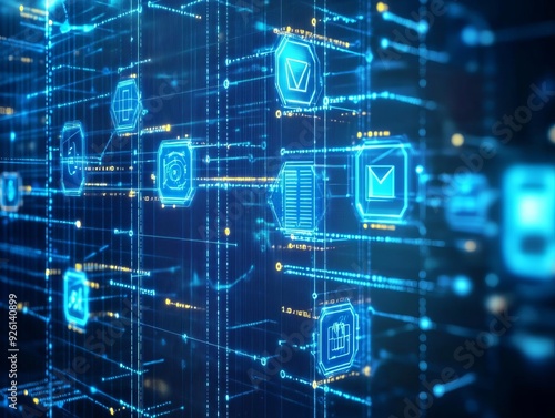 Fractal realms composition: abstract tech blueprint with data patterns, digital space network