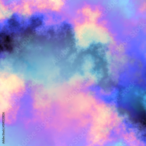 Fractal render, abstract fantasy background of colorful sky with colorful clouds