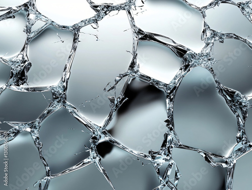 Fractured Reflections: Abstract image of shattered glass, displaying fragments, reflecting light.