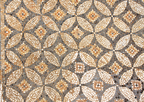 Fragment of ancient antique mosaic at The Great Baths, Dion, Pieria, Greece