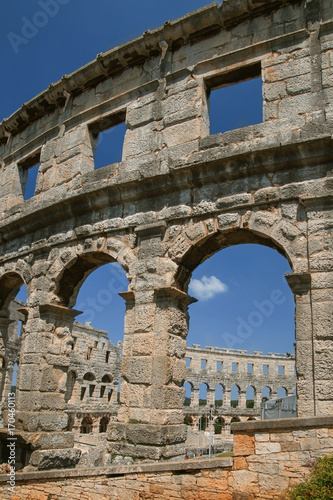 Fragment of the walls of ancient roman amphitheater in Pula, Croatia
