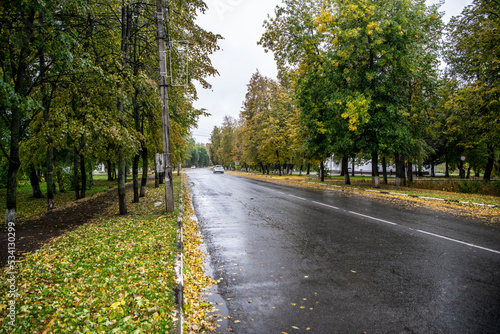 fragments of the architecture of a provincial town on a cloudy autumn day