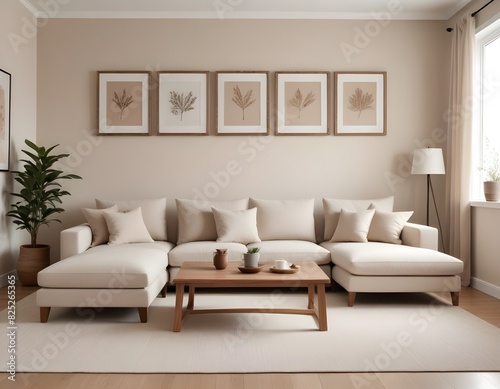 Frame mockup, ISO A paper size. Living room wall poster mockup. Modern interior design.Living room Interior mockup with house background. 3D render