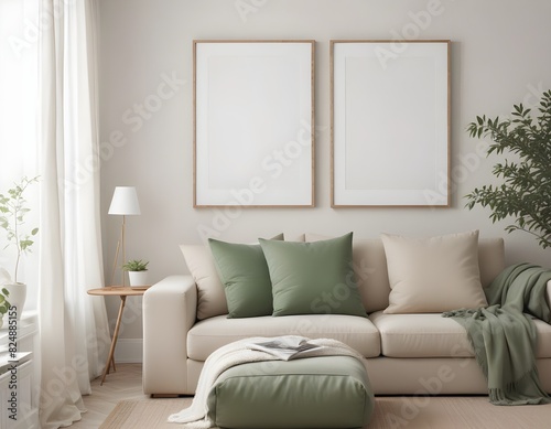 Frame mockup, ISO A paper size. Living room wall poster mockup. wall mockup. Interior mockup with house background. Modern interior design. 3D render