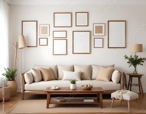 Frame mockup, single vertical ISO A paper size, reflective glass, mockup poster on the wall of the bedroom. Interior mockup. Apartment background. Modern interior design. 3D illustration, 3D render