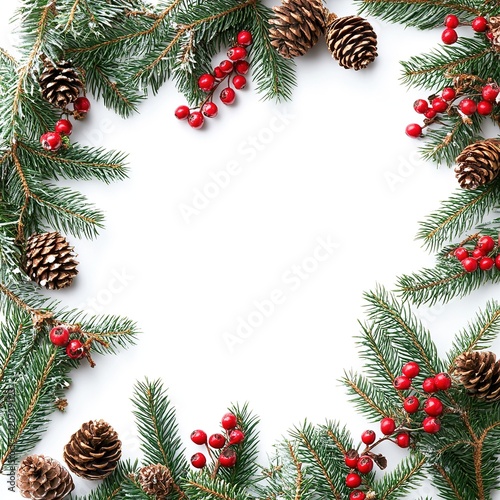 Frame of Fir Branches, Pine Cones, and Red Berries