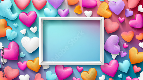 Frame of hearts with a white background