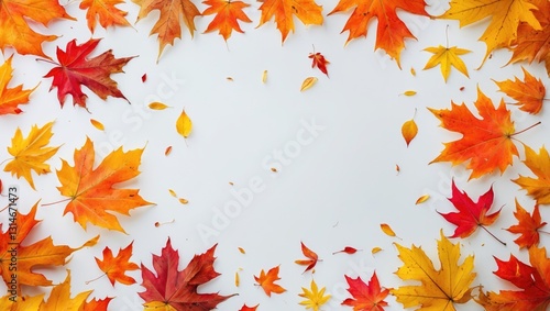 Frame of vibrant autumn leaves set against a white background.