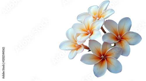 Frangipani Bloom: Close-up shot of a cluster of frangipani flowers with a vibrant mix of white and yellow petals. Perfect for adding a touch of tropical elegance.