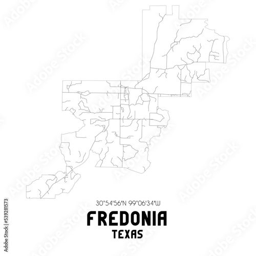 Fredonia Texas. US street map with black and white lines.