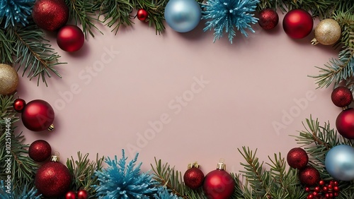 Free Photo christmas wreath with bells and ribbon greeting card Christmas border with copy space festive background