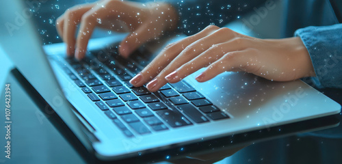 Freelancer Businesswoman Typing on Laptop Keyboard for Remote Work and E-learning at Home