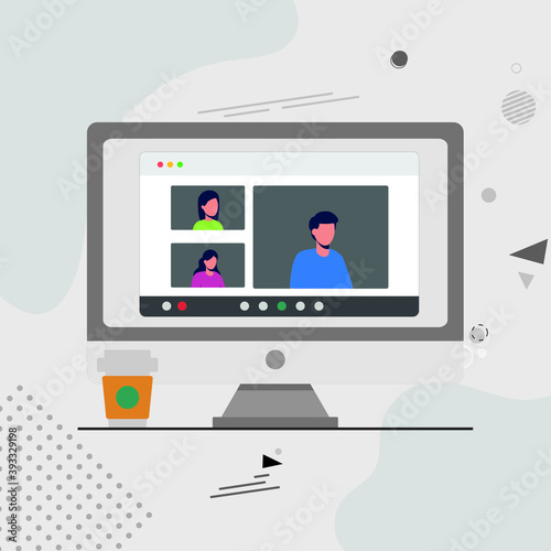 Freelancers who dialogue via teleconference. Online meetings with the team. Work from home. Design project with the team [1]