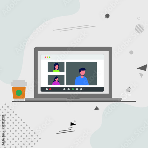 Freelancers who dialogue via teleconference. Online meetings with the team. Work from home. Web design project with team