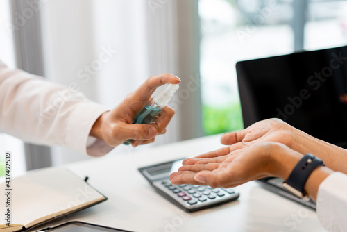 frequent spraying hand sanitizer supporting to reduce the risk of virus epidemic covid-19 at the workplace