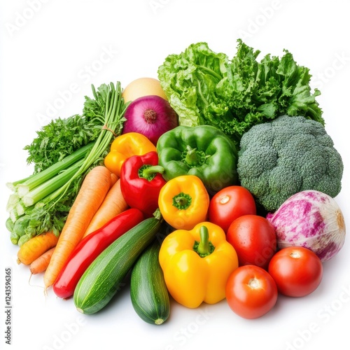 Fresh and Colorful Assortment of Vegetables Including Broccoli, Bell Peppers, Carrots, and Leafy Greens