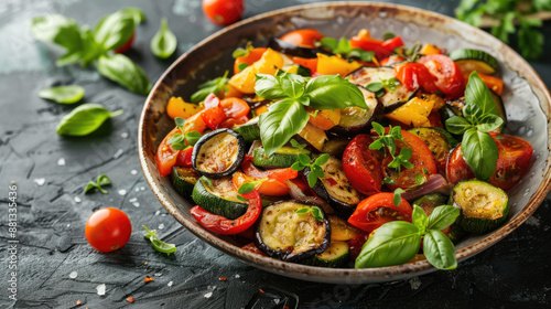Fresh and Colorful Grilled Vegetable Salad with Basil and Cherry Tomatoes