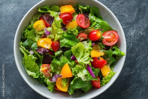 Fresh and healthy salad bowls featuring vibrant vegetables and toppings, captured from above, clean and modern presentation