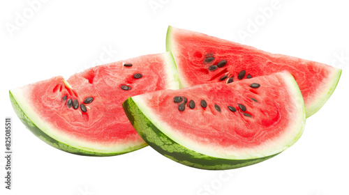 Fresh and juicy watermelon slices arranged on a clean white surface
