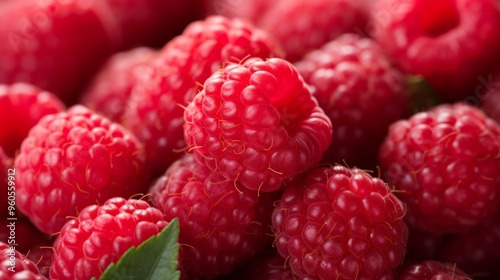 fresh and ripe raspberries on light white background close up. Neural network ai generated art