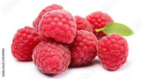 fresh and ripe raspberries on light white background close up. Neural network ai generated art