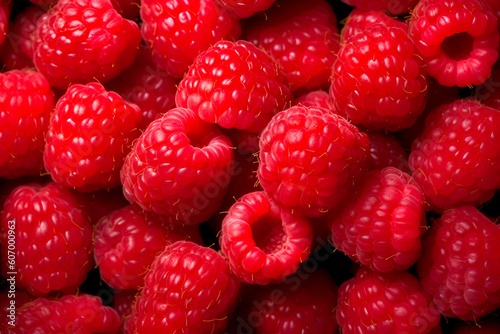 Fresh and sweet raspberries background. A close up of raspberries. Generative AI