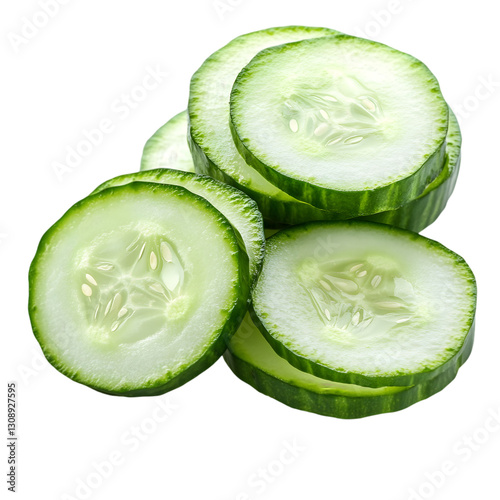 Fresh and Vibrant Sliced Cucumber PNG Isolated on a White Background: Crisp, Green Slices Showcasing a Refreshing, Healthy Appeal