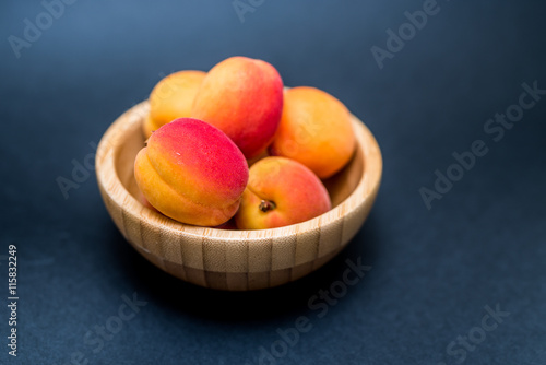 Fresh Apricots in a bowl on a dark background