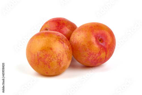 Fresh Aprium fruits, orange apricots, isolated on white background.
