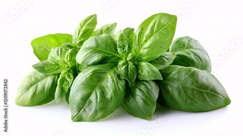 Fresh basil leaves arranged together, showcasing their vibrant green color and smooth texture, ideal for culinary use or as an aromatic herb.