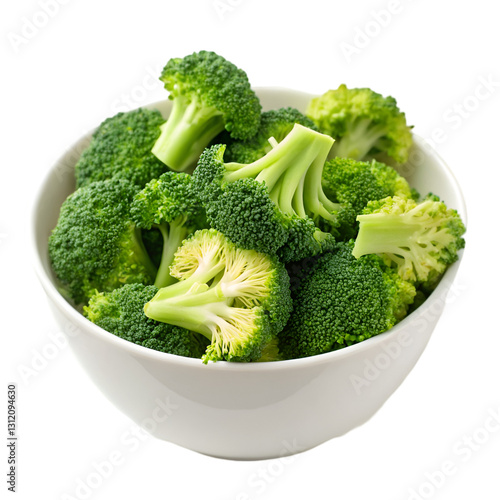 Fresh broccoli florets in bowl isolated on transparent background