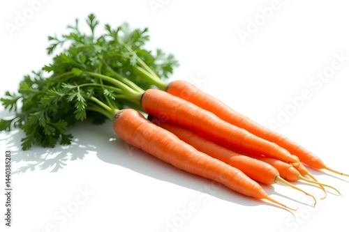 Fresh Carrots with Green Tops on White Background